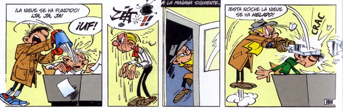 En cuanto a los posibles plagios, se pueden ver ejemplos aquí o aquí, donde bajo la etiqueta de “influencias francobelgas” se detallan muchas de las coincidencias. Parece que el Botones Sacarino guarda sospechosas coincidencias con el personaje Gaston Lagaffe, del belga Franquin.
